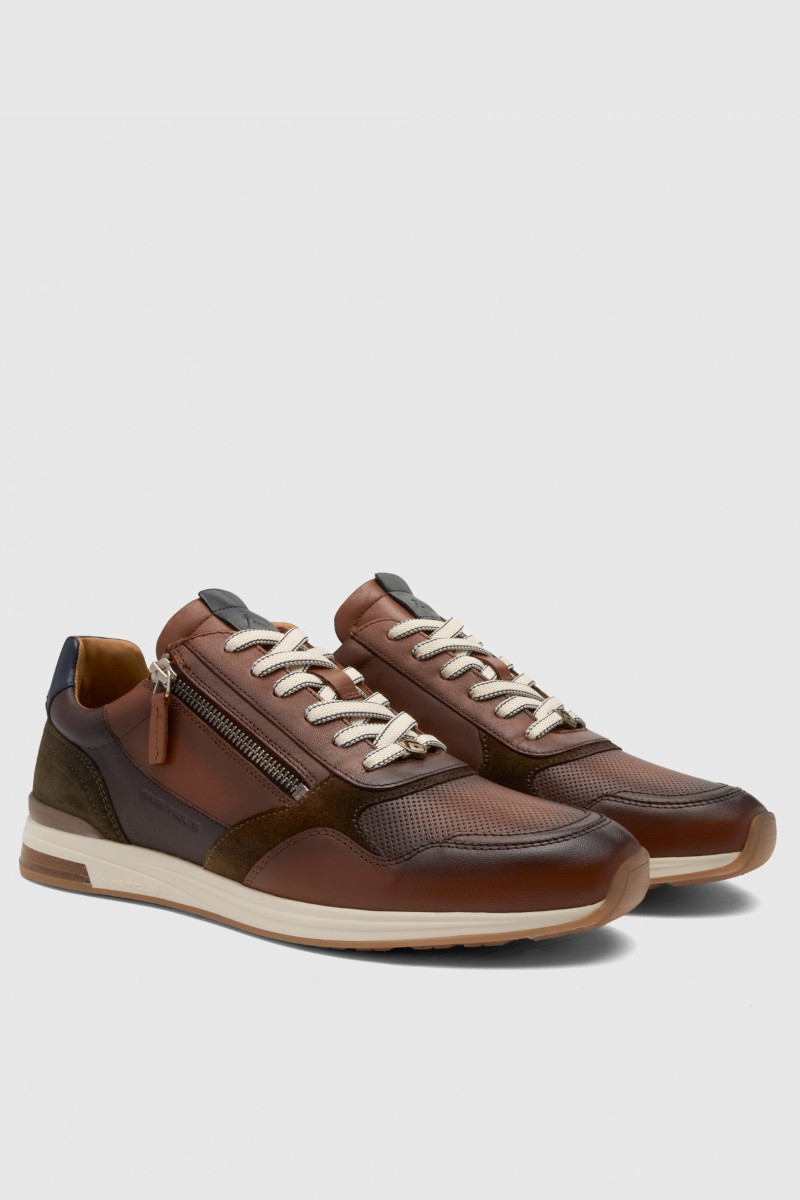 Il modello Slow è stato rivisitato e gli è stato conferito uno stile più sportivo. Scarpa in pelle che combina pannelli in pelle premium con effetto patina e camoscio, con l’aggiunta di una zip laterale per una calzata più semplice e un look moderno. Suola in gomma con dettaglio in pelle.