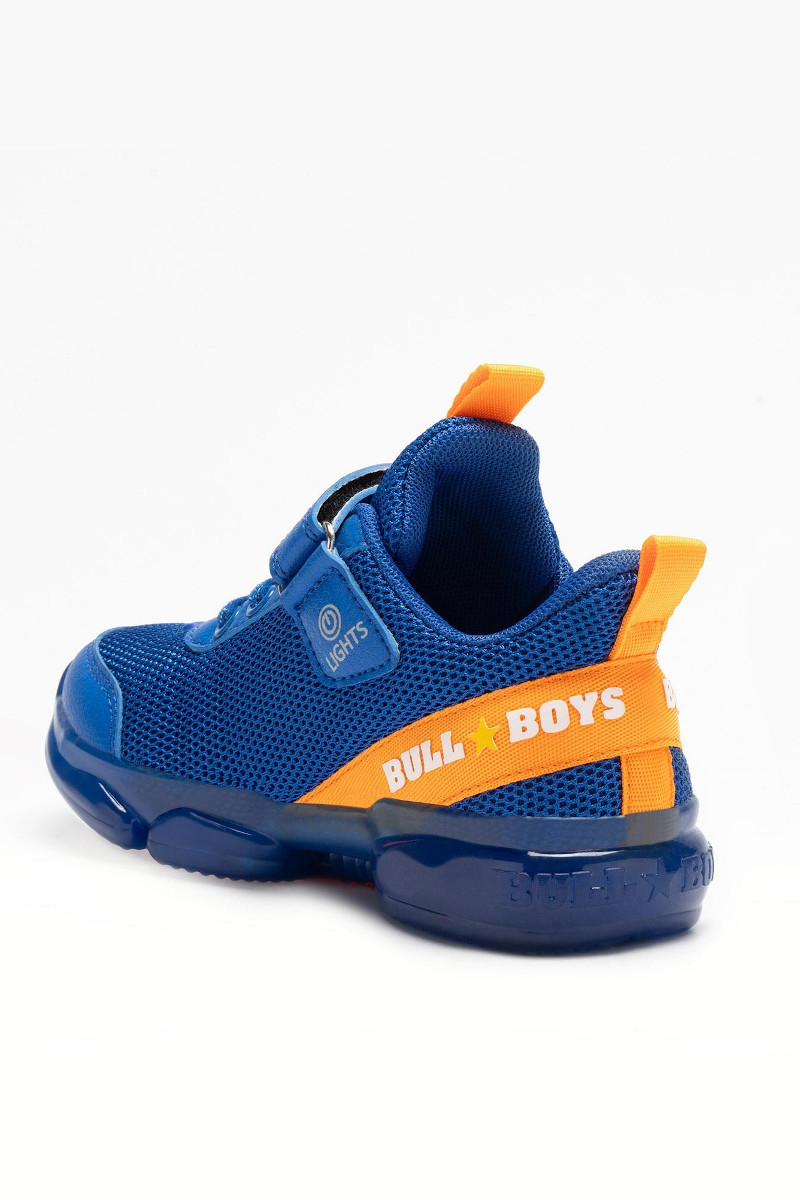 Sneaker BULL BOYS con luci! Scarpa da bambino con luci DINOSAURO T REX color blu arancio. Sneaker con strappo e laccio elasticizzato che garantirà la massima autonomia di calzata ai più piccini. La scarpa che tutti adorano, perfetta per la scuola ed il tempo libero.