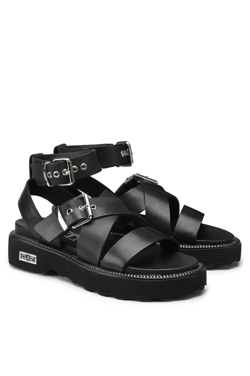 Immancabili nel guardaroba di stagione, i sandali chunky firmati Cult aggiungeranno carattere e stile ai vostri look estivi. Realizzati in pelle nera, presentano cinturini con fibbie metalliche e poggiano su una generosa suola in gomma. Sceglieteli sia con shorts sia con abiti.