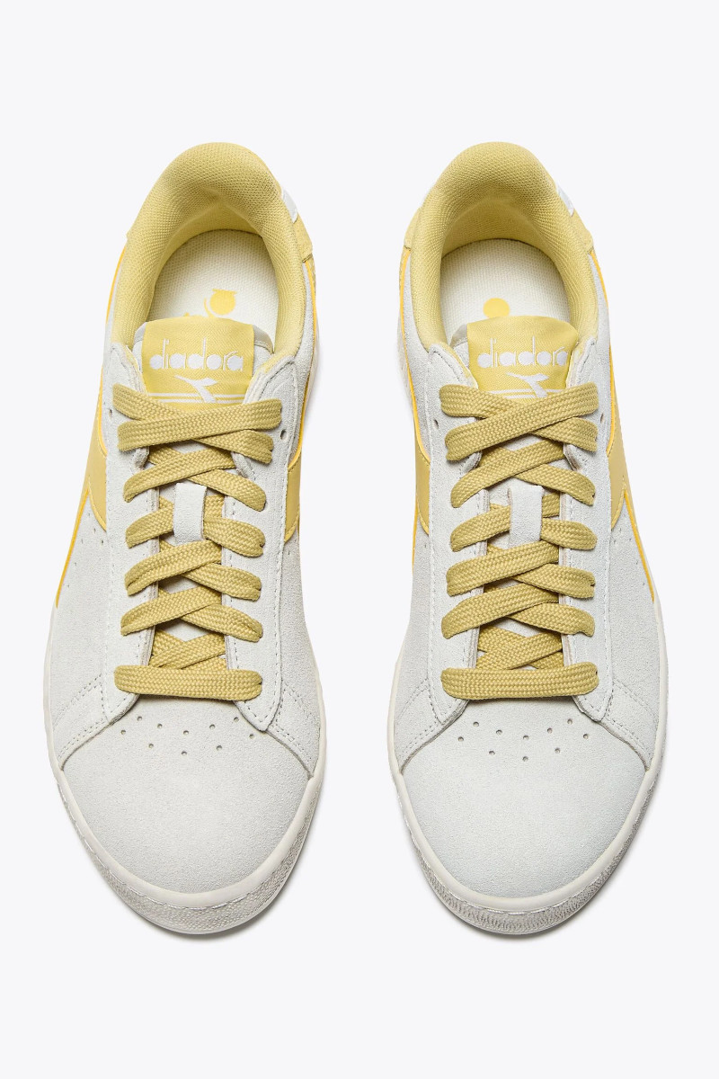 La sneaker Diadora modello Game deve la sua popolarità all’estetica retro, ispirata alle scarpe tennis di un tempo. Realizzata in camoscio con sfregio in pelle. Questa doppia texture aggiunge dinamicità alla scarpa e conferma il suo stile iconico.