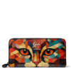 Portafoglio GABS donna della linea GABS LOVES ANIMAL. Modello GMONEY17 realizzato in pelle martellata stampa gatto rosso. Chiusura zip e doppio scomparto interno. Tasca per spiccioli e scomparti per carte. Misura: 19x10x2 cm