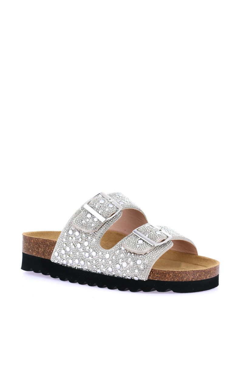 Vesti i tuoi piedi di luminosità e, ovviamente, di comodità Made in Grünland. La splendida modello HOLA tempestata di micro-perle ti renderà impeccabile in ogni situazione e con ogni outfit. Dotata di sottopiede Re-Soft che ammortizza l’impatto al suolo e accoglie il piede con un comfort senza pari.