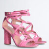 Sandali Liu Jo donna in vernice con fascette incrociate. Chiusura con cinturino alla caviglia. Fibbia regolabile con logo. Tacco a colonna con logo all over 10,5 cm. Sandalo tacco elegante e glamour.