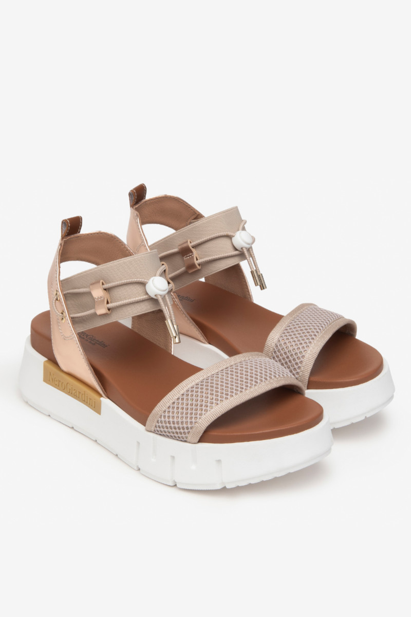 Sandalo NeroGiardini donna in pelle color phard. Elastico con lacci a chiusura rapida.