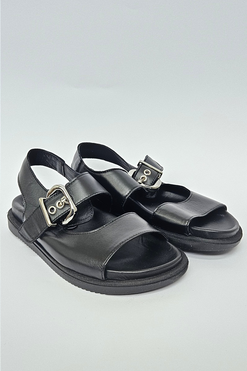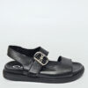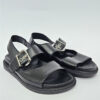 Sandalo in pelle color Nero by Silk-ò. Modello pianta larga con fibbia grande realizzato interamente in pelle Made in Italy.