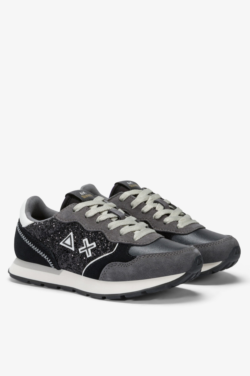 Sneaker sportiva Sun68 bambina in pelle e camoscio color nero. Dettagli glitter per non rinunciare ad uno stile glamour.