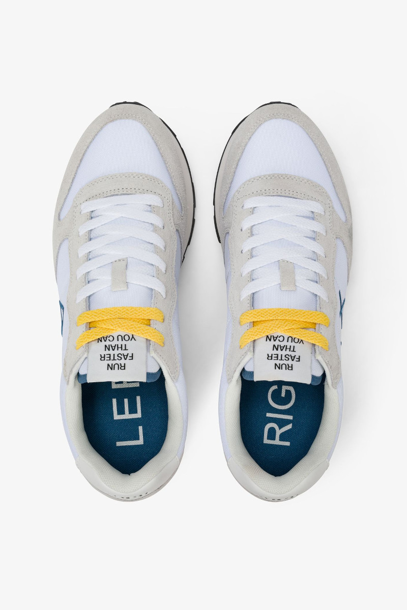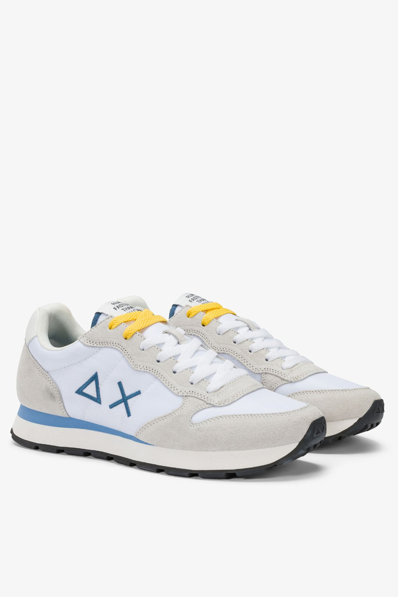 Scarpa sportiva uomo SUN68 in camoscio e tessuto color Bianco. Sneaker modello running Tom Solid con doppio laccio. Leggera e comoda, perfetta per ogni occasione. Indossala in cittร , per andare a lavoro o nel tempo libero. Questa scarpa si abbina perfettamente ad ogni tipologia di outfit dai piรน sportivi a quelli casual.